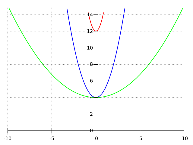 In het geval \(a\lt0\), zal de grafiek ook flip om de #y#-as spiegelen (de ontstane grafiek zal weerspiegeling zijn van \(f\) in de \(y\)-as). De ligging van de nulpunten van de functie \(f\) en de locatie van de minima en/of maxima veranderen, terwijl de minima en/of maxima in termen van \(y\) hetzelfde blijven.