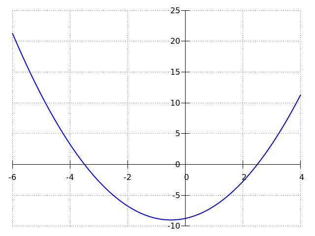 \[x=\dfrac{-b - \sqrt{b^2-4a\cdot c}}{2a}\lor x=\dfrac{-b+ \sqrt{b^2-4a\cdot c}}{2a}\]