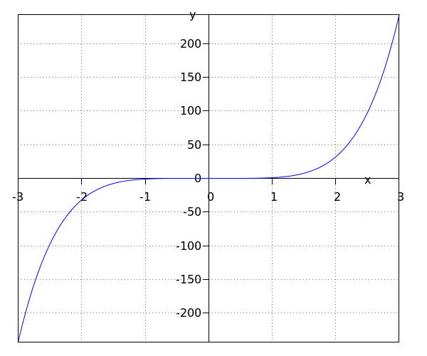 Een functie van de vorm \[f(x)=\blue{a}x^{\orange{n}}\] met #\blue{a} \ne 0# is een machtsfunctie.
