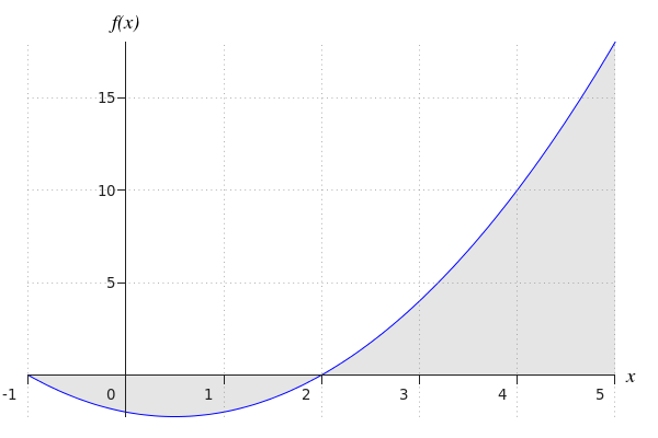 Hierbij staat er een plusteken voor de integraal als #f# positief is op dat gebied en een minteken als #f# negatief is.