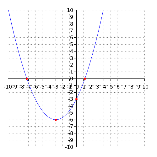 We hebben gezien dat een grafiek van een kwadratische formule een parabool is. Ook hebben we gezien hoe we de snijpunten met de assen, de top en andere punten bij gekozen waarden van #x# van de parabool kunnen berekenen. Zo kunnen we snel de grafiek van een kwadratische formule tekenen.